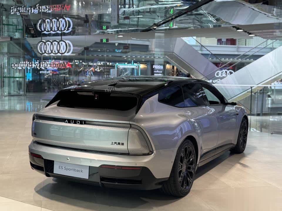 侧面上,这款奥迪最大的看点就是浓烈的低趴元素,并且整个贯穿式布局更是有国产造车新势力的感觉。针对细节,比如腰线带有明显的分段式设计,特别是在尾部和中间位置呈现出了明显的阶梯感。门把手也全部升级到了隐藏式的设计,前后隆起的大轮眉以及大尺寸的炭黑轮毂,最大限度的提升了新车的运动感。另外新车还首次采用了电子后视镜,电吸门等,几乎所有国产造车新势力的配置,在这款车上都能有所呈现。尺寸,这款奥迪E5 Sportback的长宽高分别为4881/1960/1479mm,轴距2950mm,或定位中型车,尺寸上的优势非常明显。车尾部就比较简单了,几乎是车头的翻版。